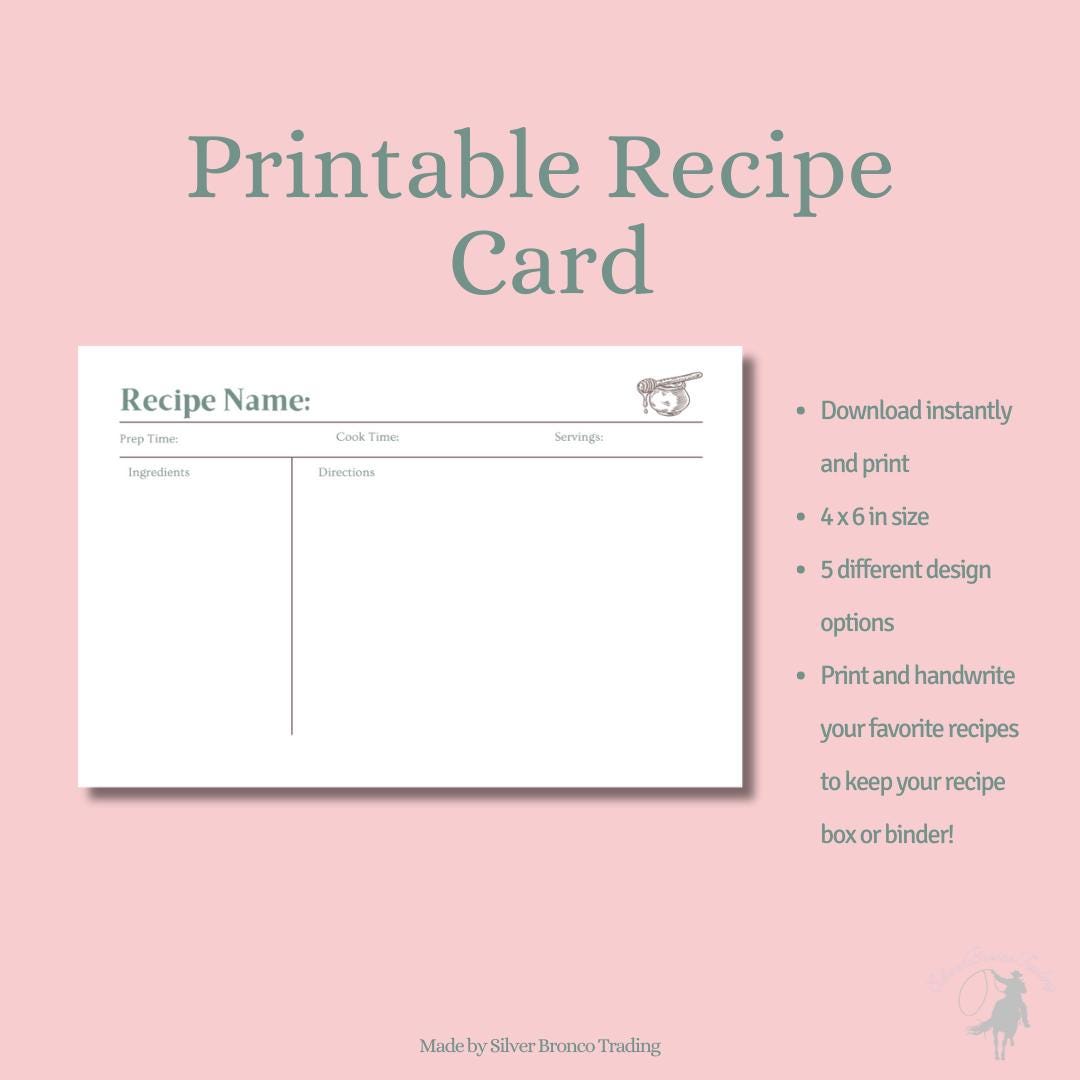 Recipe Card Template 4x6 Printable Design PDF Digital Download