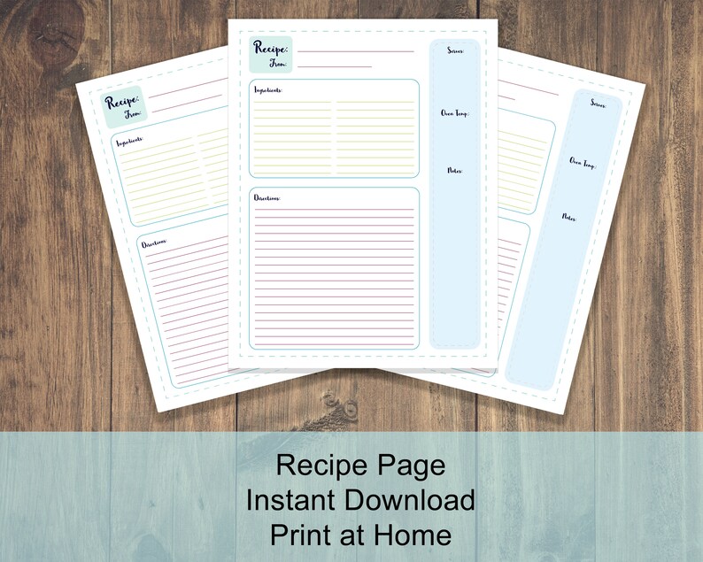 Bright Recipe Printable Pages Recipe Binder Insert Meal Etsy