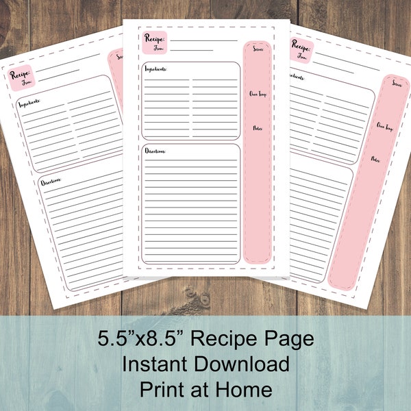 Recipe Printable Pages Recipe Binder Insert Meal Planning Organization