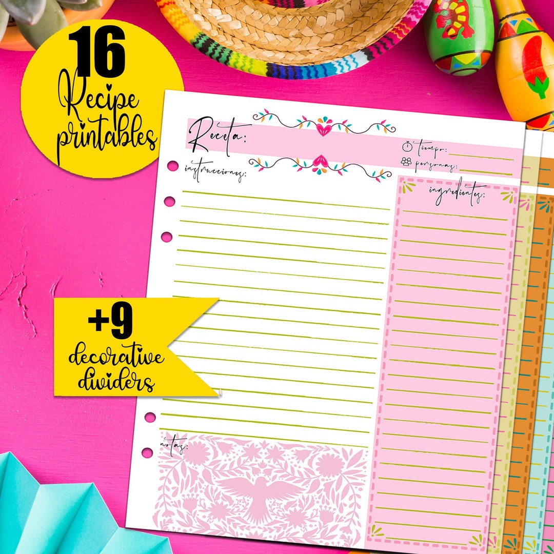 Latino Recipe Printable Pages With Decorative Meal Dividers Etsy