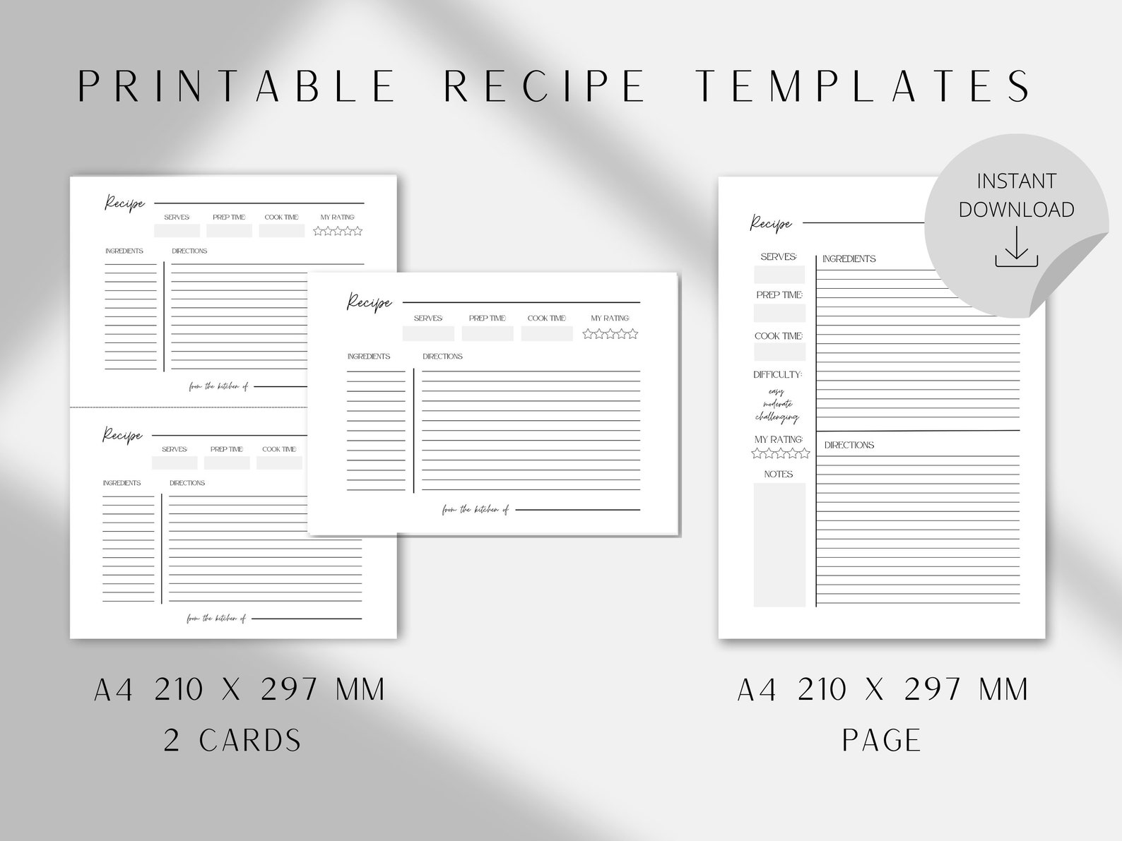 Printable Recipe Templates I Printable Recipe Card Templates I DIY