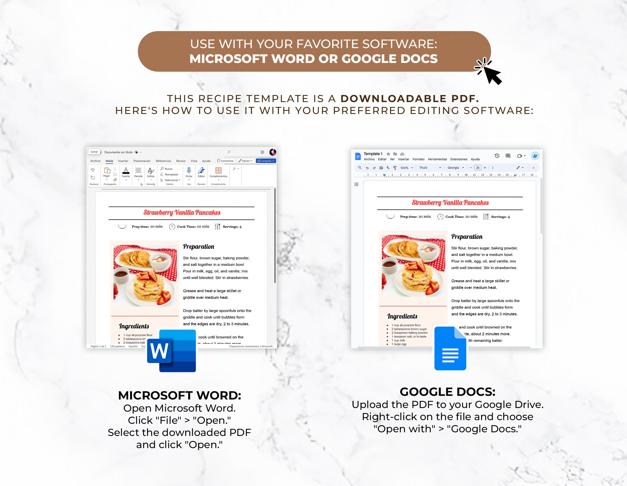 Editable Recipe With MS Word and Google Docs Recipe Template Printable