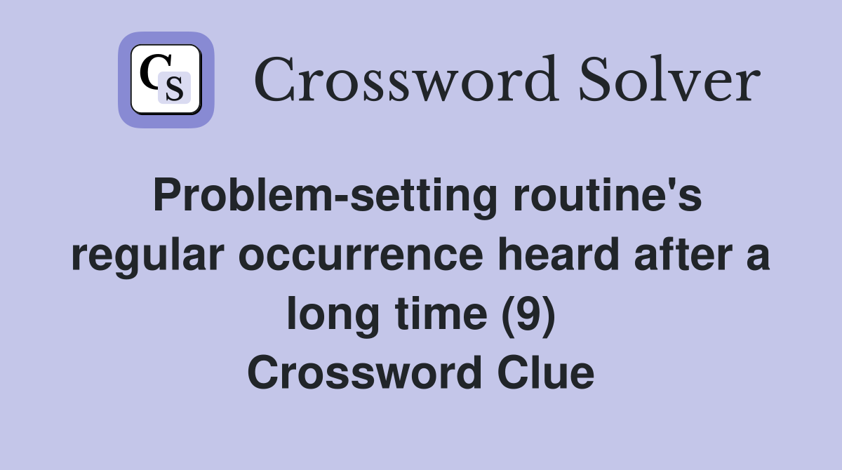 Problem setting routine #39 s regular occurrence heard after a long time (9