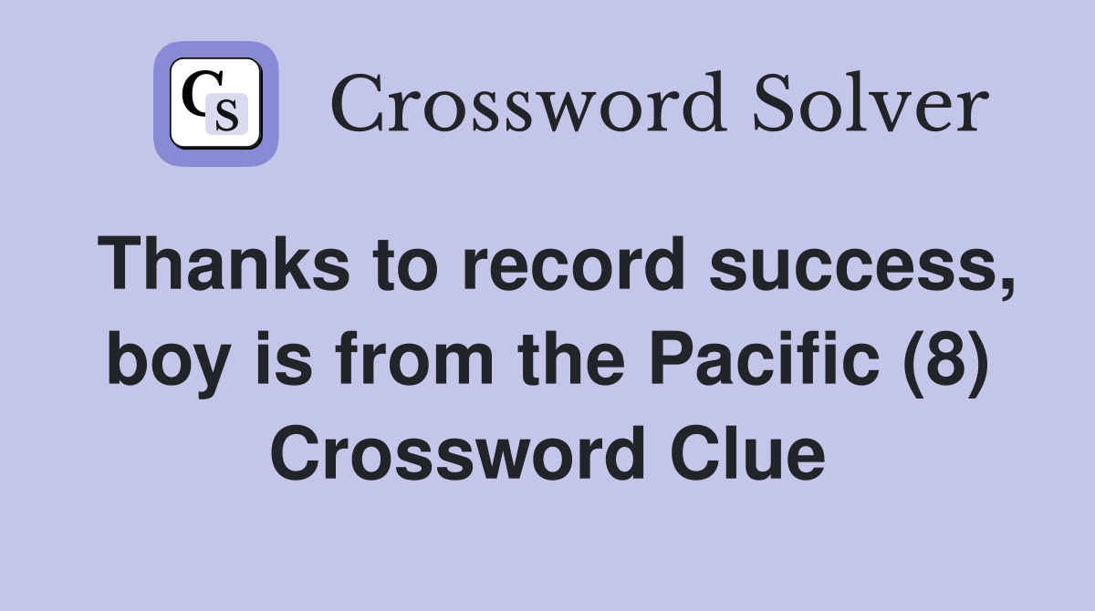 Thanks to record success boy is from the Pacific (8) Crossword Clue