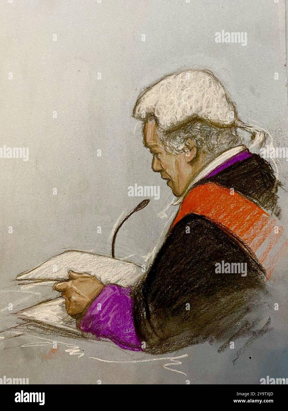 Court artist sketch by Elizabeth Cook of Honorary Recorder of Liverpool