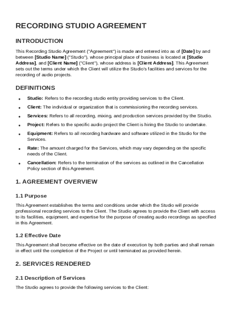 Recording Studio Agreement Template pdfFiller