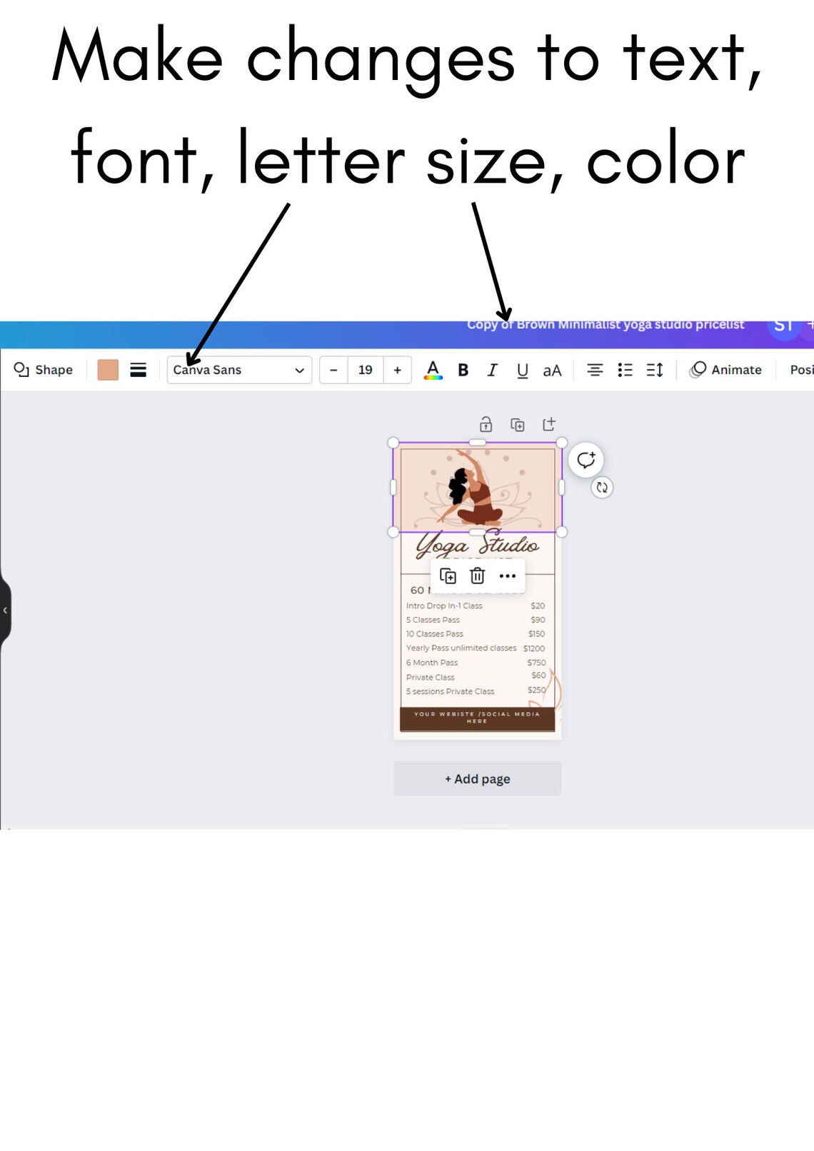 Yoga Studio Price List Template Editable Canva Template for Yoga
