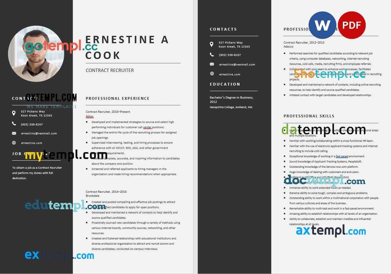free contract recruiter resume template Word and PDF format