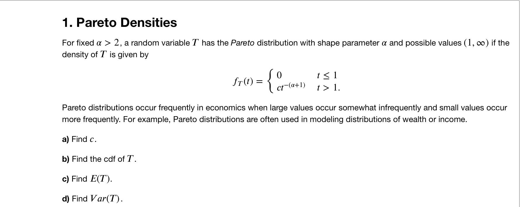 Solved 1 Pareto Densities For fixed α gt 2 a random variable Chegg com