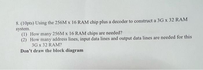 Solved 8 (10pts) Using the 256M x 16 RAM chip plus a Chegg com