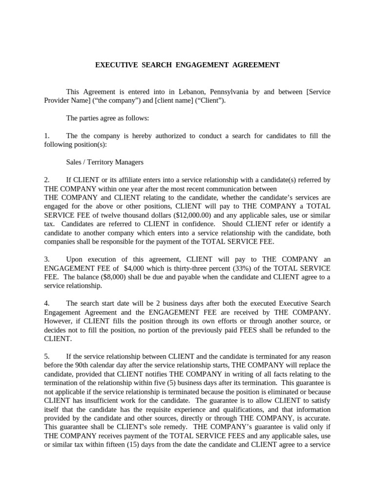 Recruiting Engaged Fee Agreement PDF Guarantee Fee