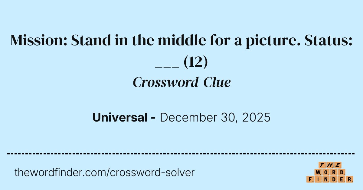 Mission: Stand in the middle for a picture Status: Crossword Clue