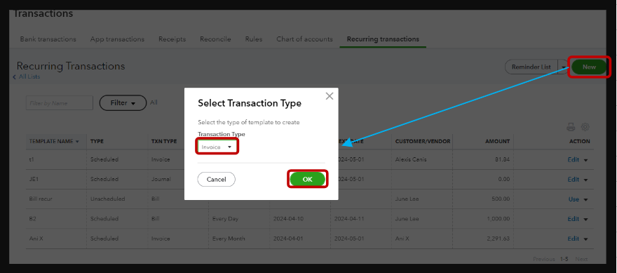 Recurring invoices (Basic): Create apply templates TaxDome Help Center