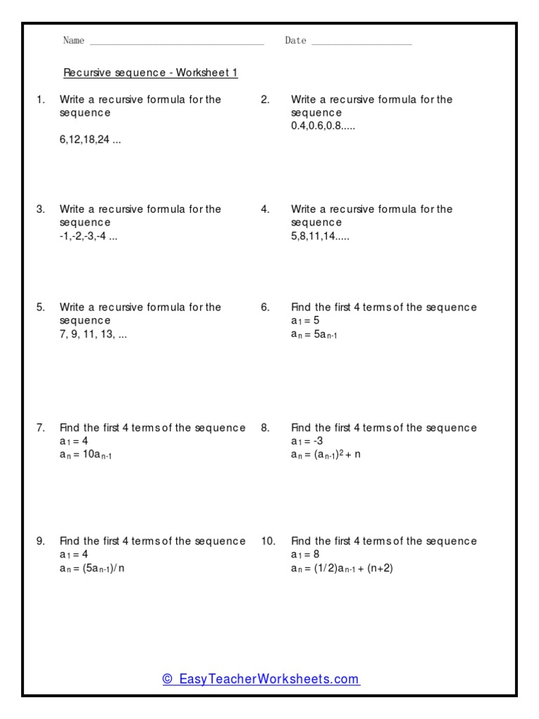 Recursive Formula Worksheets And Answers
