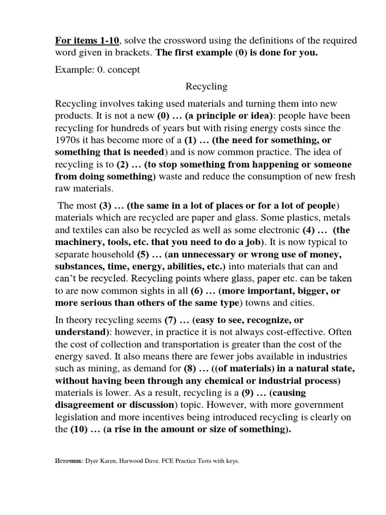 Recycling crossword PDF