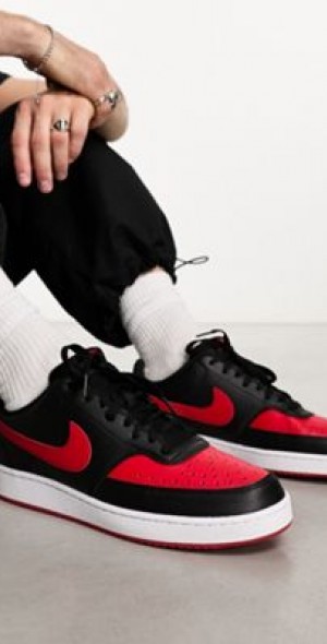Mens Black Red Nike Court Vision Low Trainers schuh