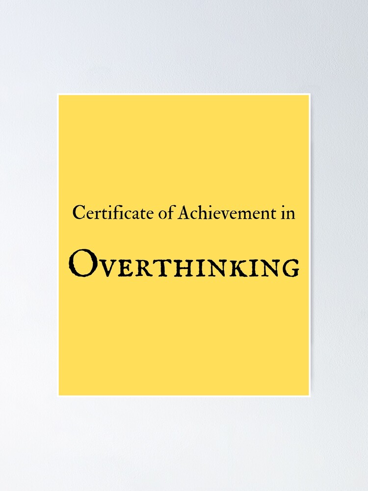 quot Certificate of Achievement in Overthinking quot Poster for Sale by