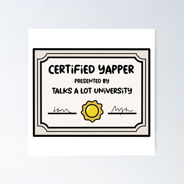 quot Certified Yapper Certificate quot Poster for Sale by MakerBeeDesigns
