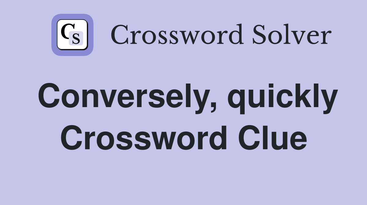Conversely quickly Crossword Clue Answers Crossword Solver