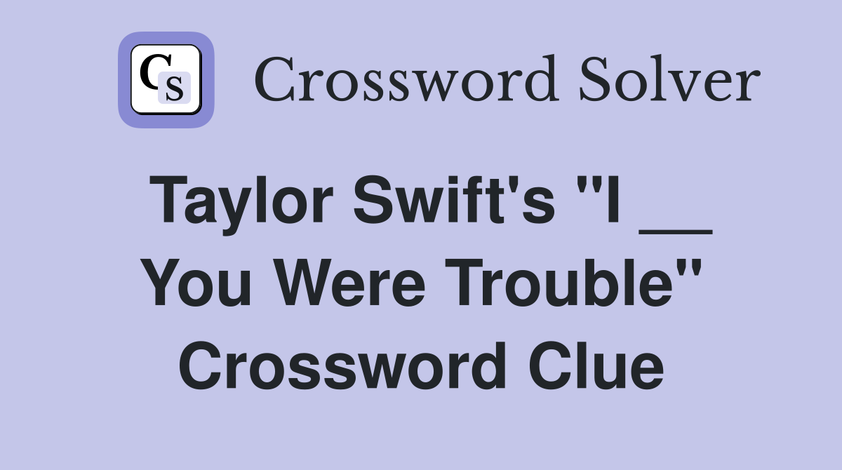 Taylor Swift #39 s quot I You Were Trouble quot Crossword Clue Answers