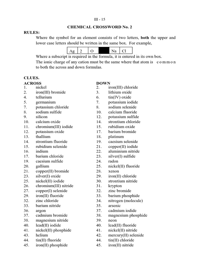 Chemical Crossword No 2 Rules Descargar gratis PDF Oxide Silver