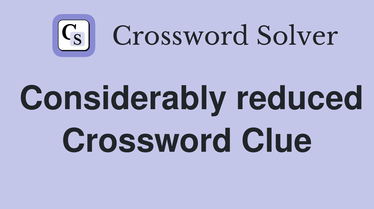 Considerably reduced Crossword Clue Answers Crossword Solver