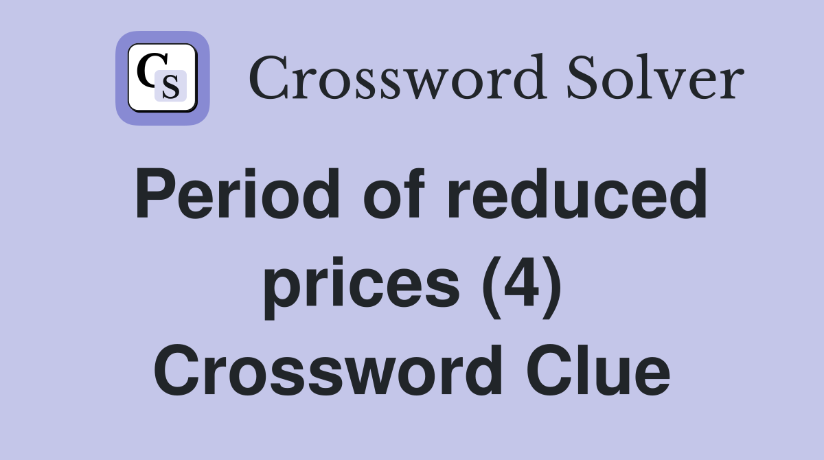 Period of reduced prices (4) Crossword Clue Answers Crossword Solver