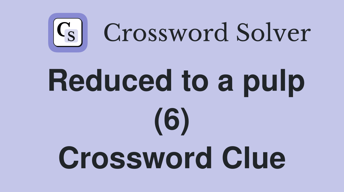 Reduced to a pulp (6) Crossword Clue Answers Crossword Solver