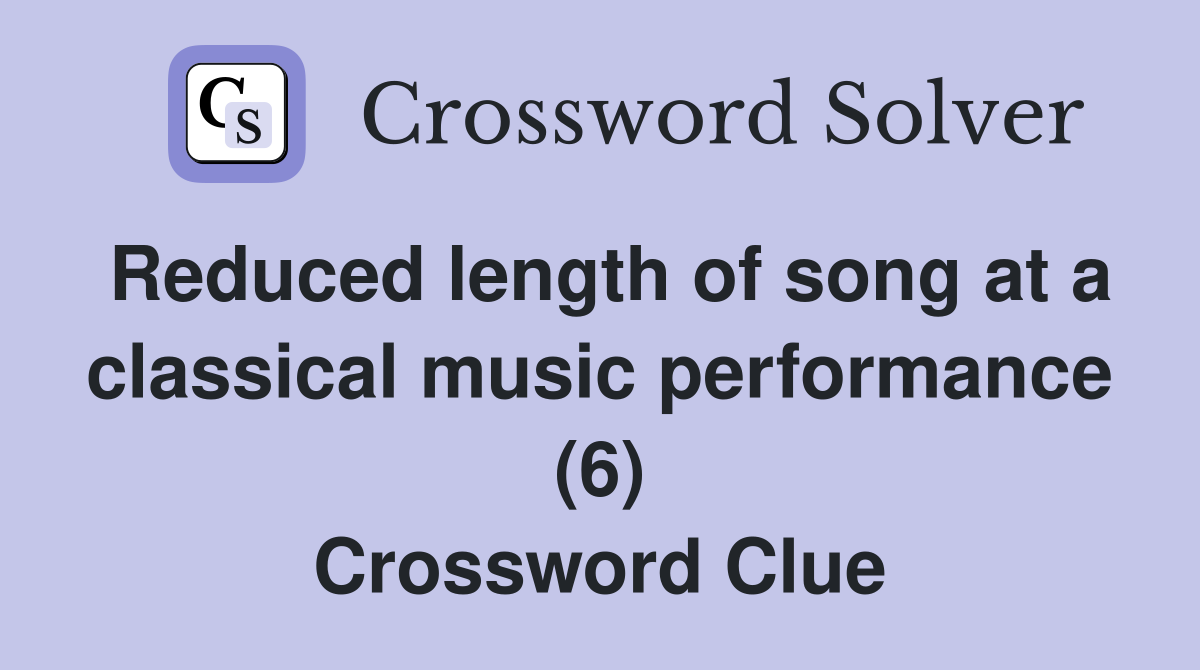 Reduced length of song at a classical music performance (6) Crossword