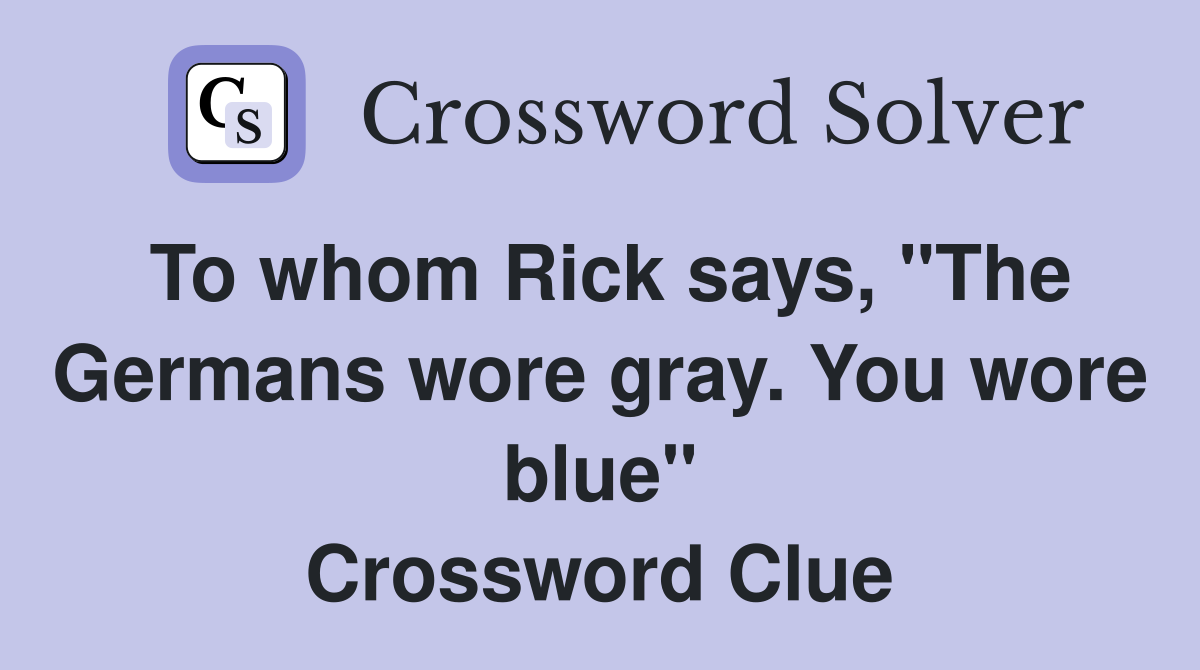 To whom Rick says quot The Germans wore gray You wore blue quot Crossword