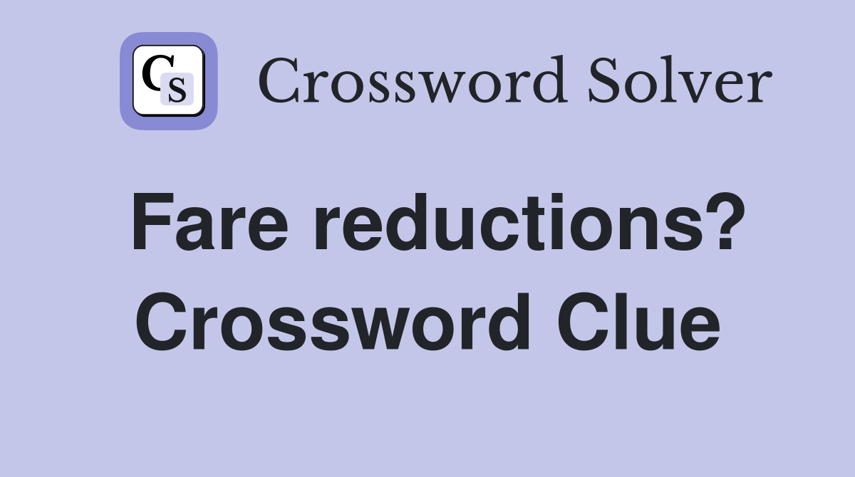 Fare reductions? Crossword Clue Answers Crossword Solver