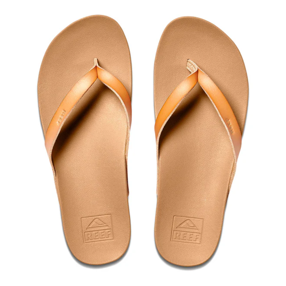2023 Reef Womens Cushion Court Flip Flops RF0A3FDSTAH Tan / Champagne