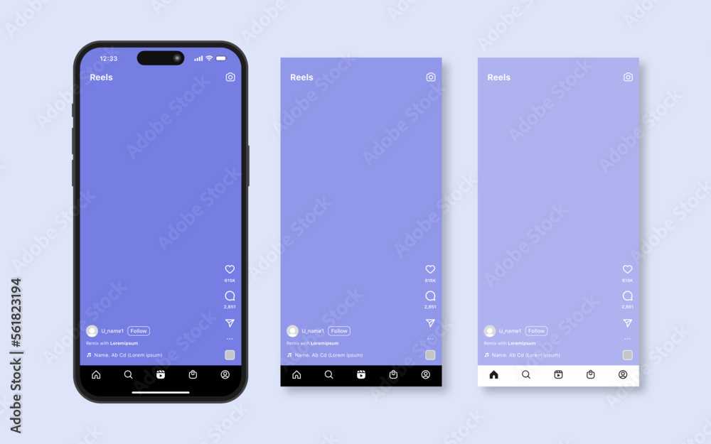 Instagram reels empty screen ui blank template mockup Instagram reel