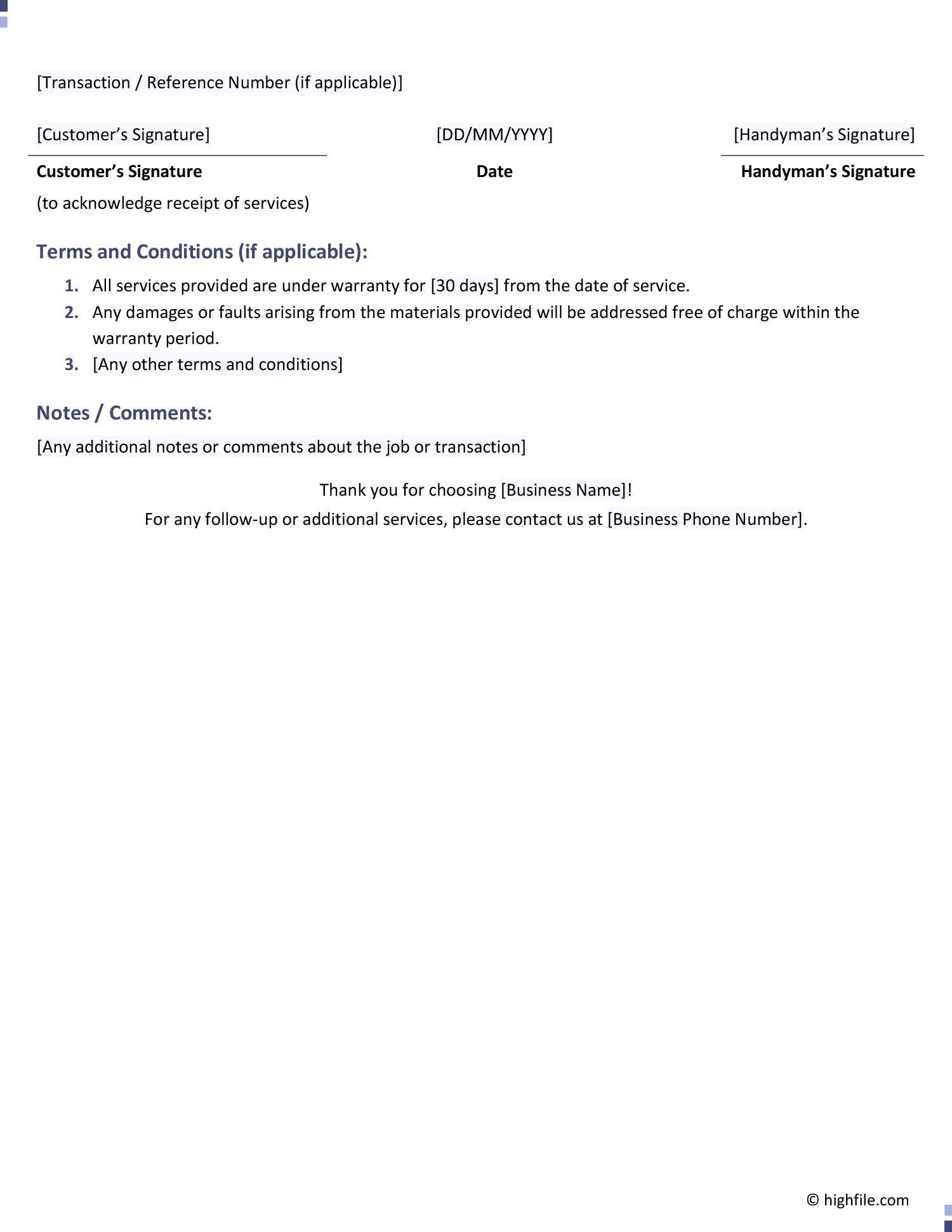 Handyman Receipt Template Word Google Docs Highfile