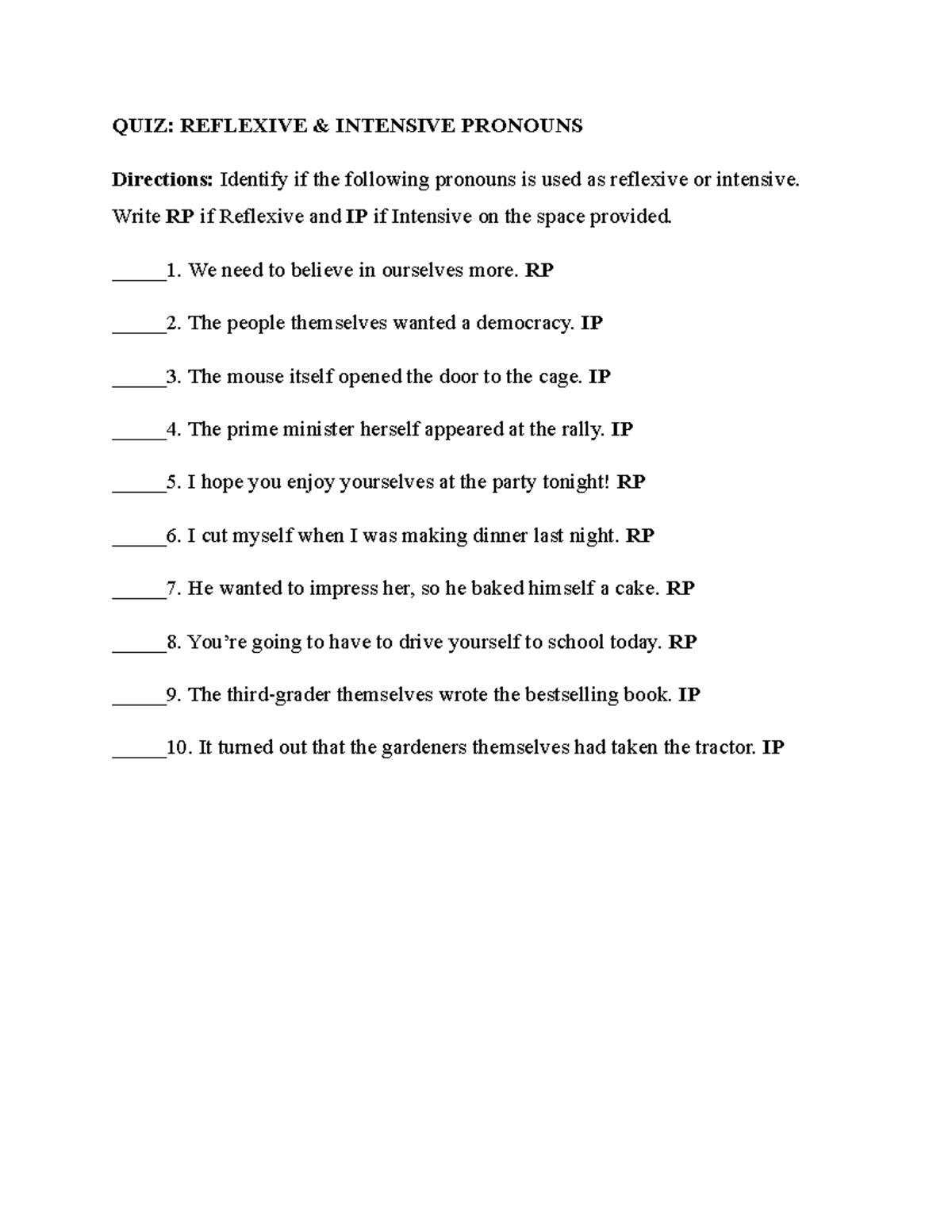 Reflexive And Intensive Pronouns Practice Free Worksheets Printable