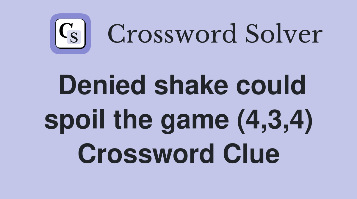 Denied shake could spoil the game (4 3 4) Crossword Clue Answers