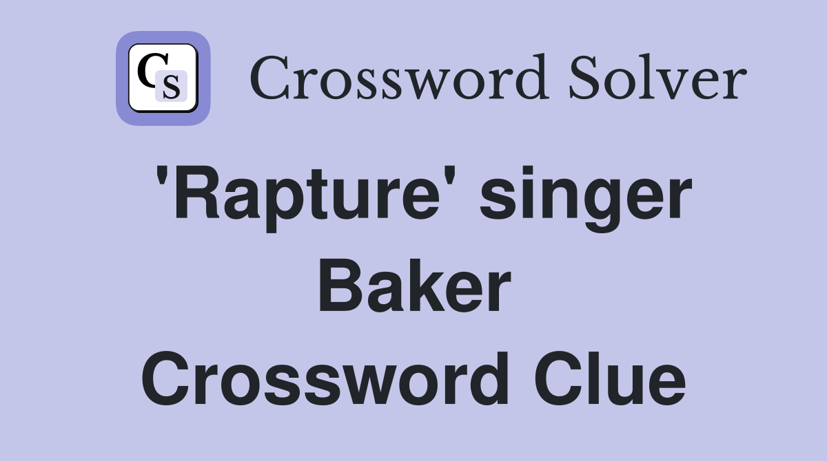 #39 Rapture #39 singer Baker Crossword Clue Answers Crossword Solver