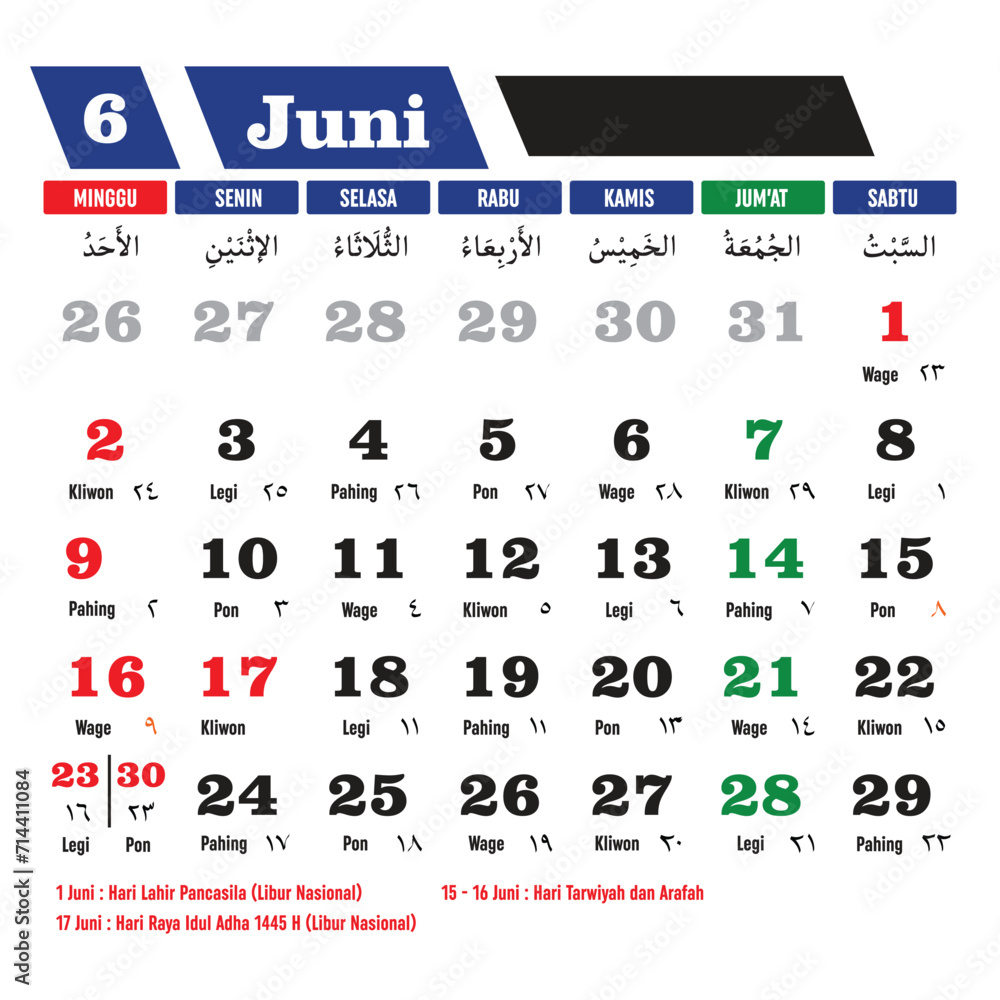 Vector design of 2024 Hijri Calendar Template for June with Indonesian