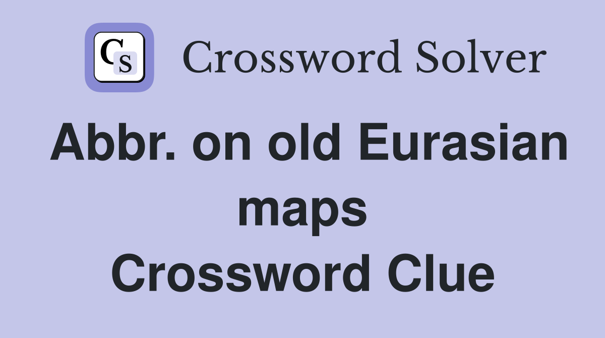 Abbr on old Eurasian maps Crossword Clue Answers Crossword Solver