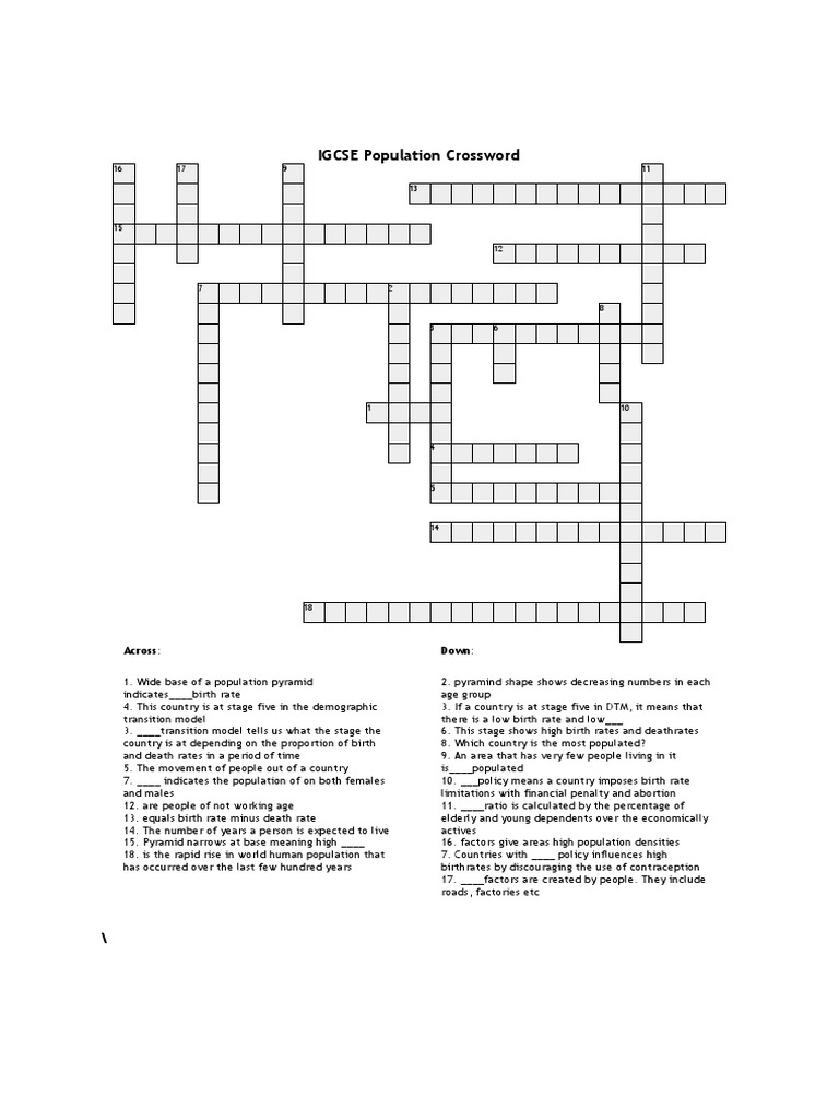 IGCSE Population Crossword No Answers PDF Birth Rate Actuarial