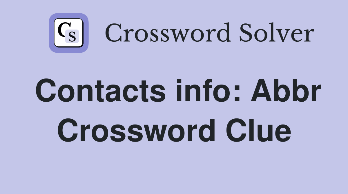 Contacts info: Abbr Crossword Clue Answers Crossword Solver