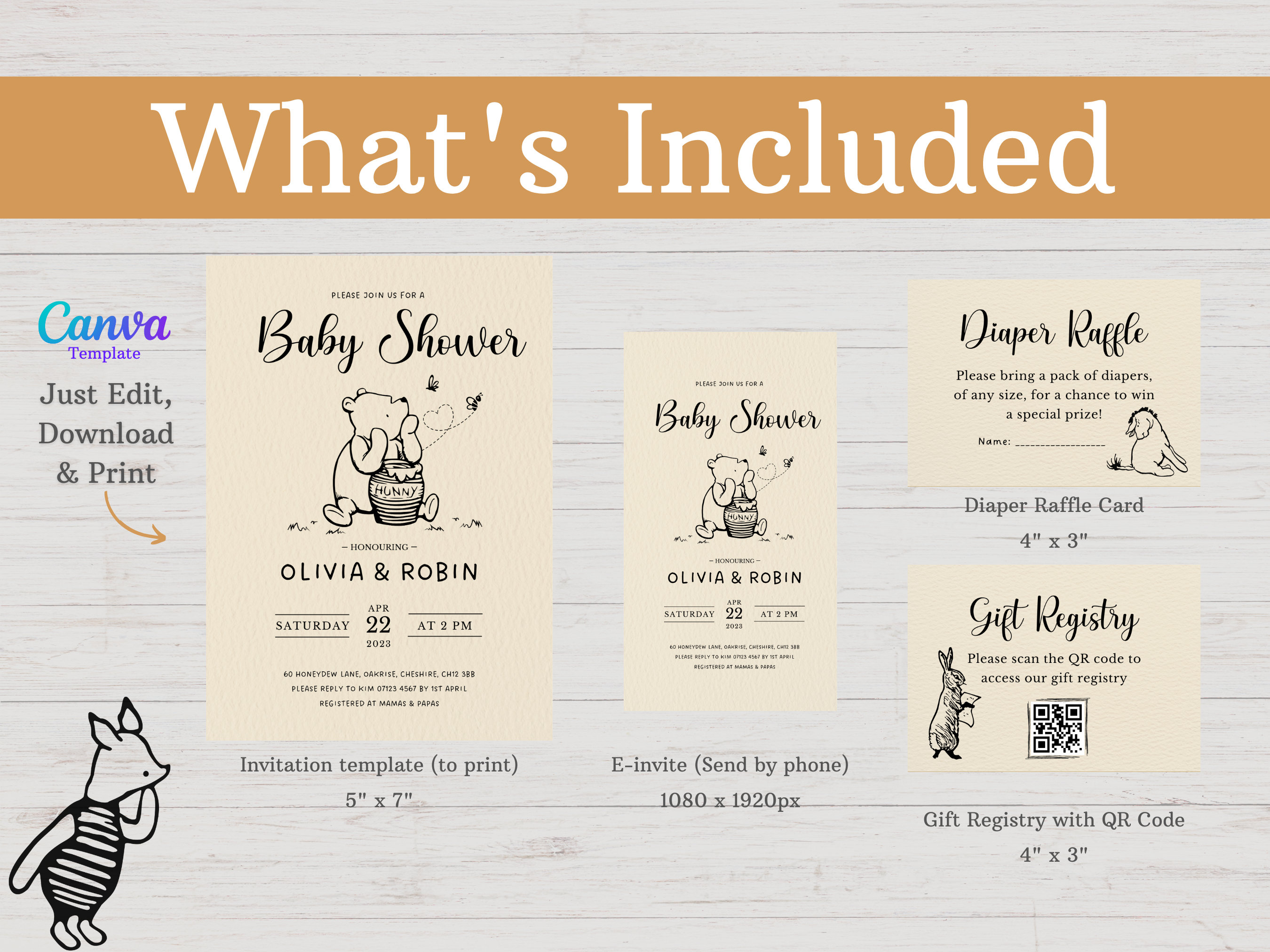 Winnie the Pooh Baby Shower Invitations Diaper Raffle Baby Registry QR