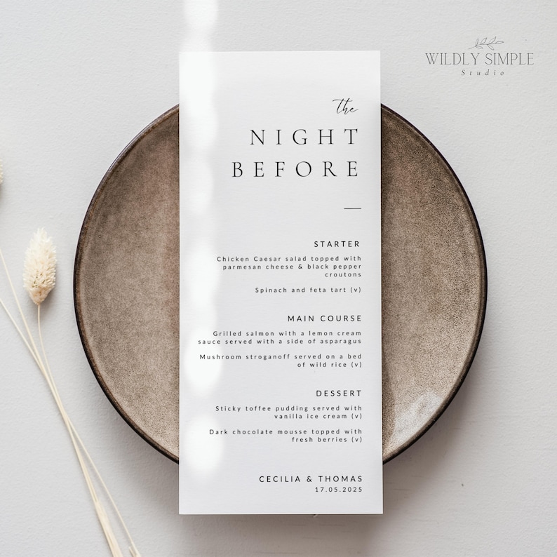 Rehearsal Dinner Menu Template the Night Before Setting Card Modern