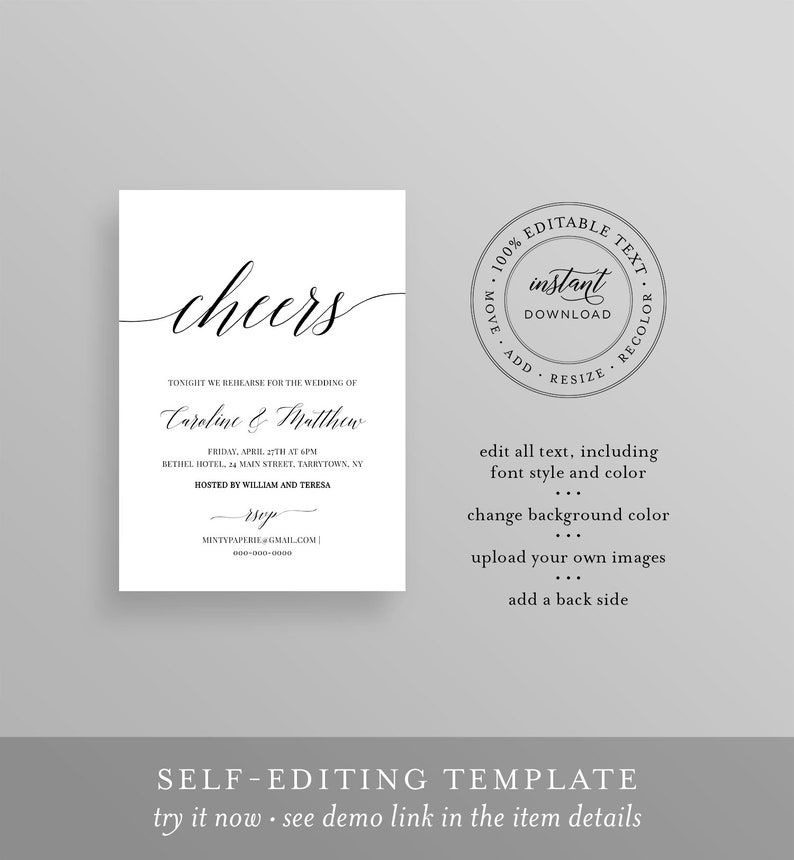 Wedding Rehearsal Dinner Invitation Template INSTANT DOWNLOAD