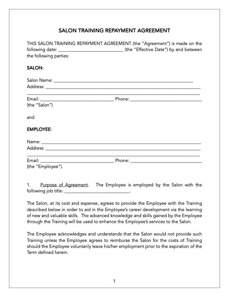 Salon Training Repayment Agreement Hair Stylist Training Reimbursement