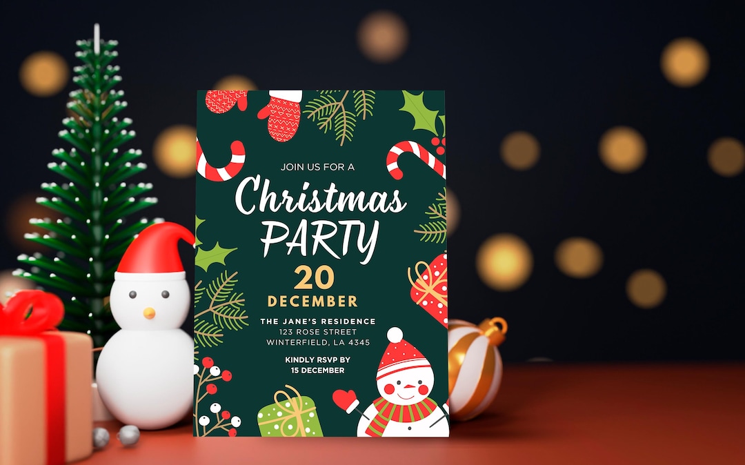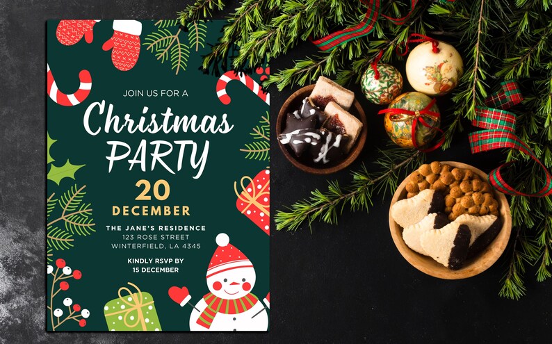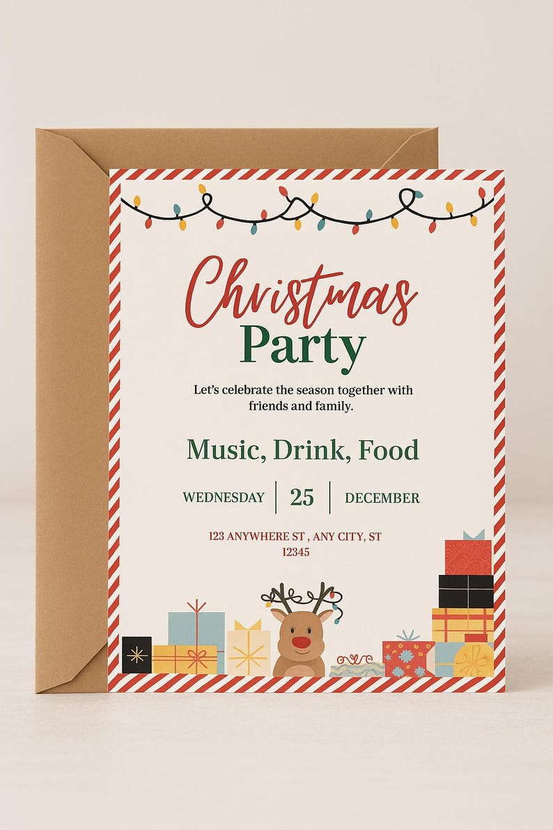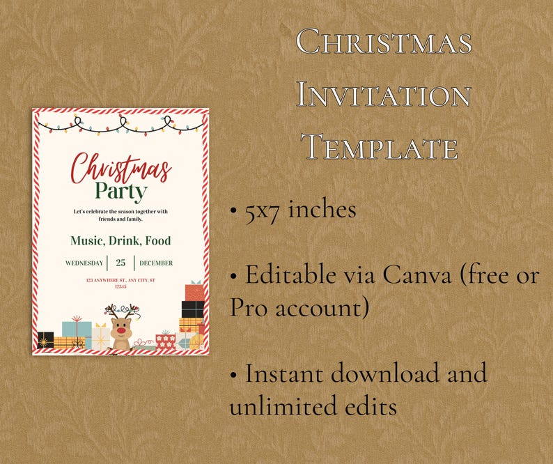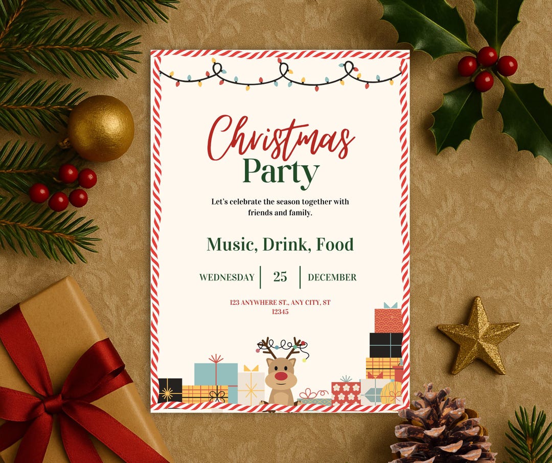 Reindeer Christmas Party Invitation Editable Holiday Invite Festive