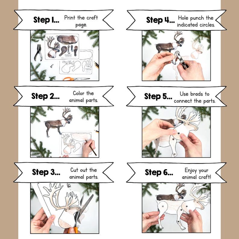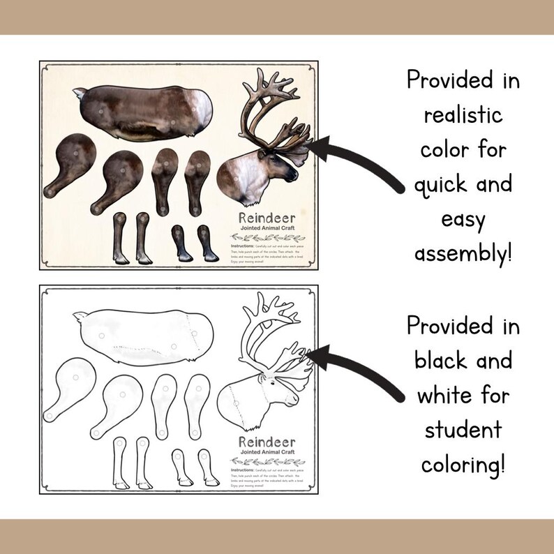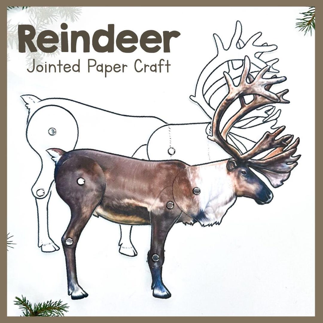Printable REINDEER Puppet Craft DIY Jointed Caribou Template PDF