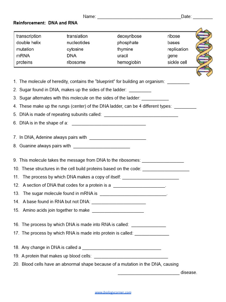 Reinforcement Dna Worksheet Answers Printable Word Searches