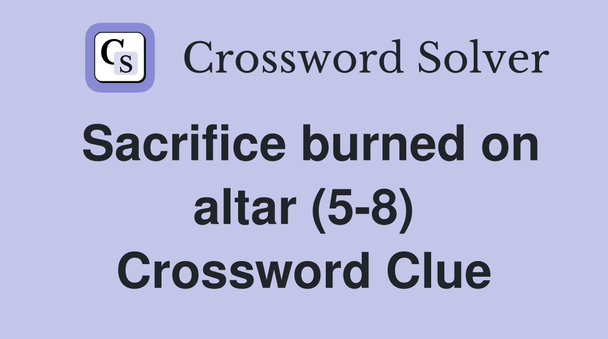 Sacrifice burned on altar (5 8) Crossword Clue Answers Crossword Solver