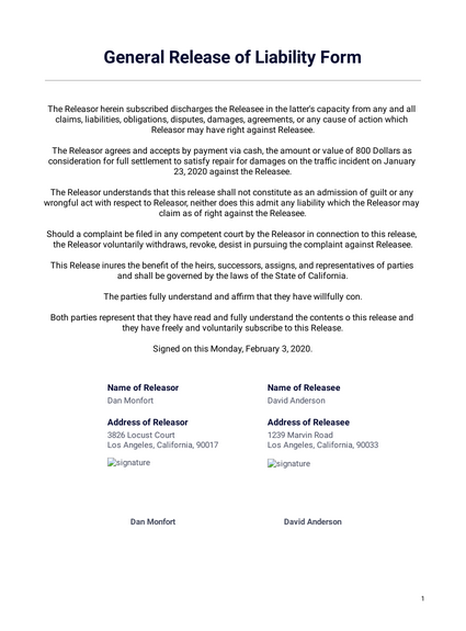 Free General Release of Liability Template to Edit Online